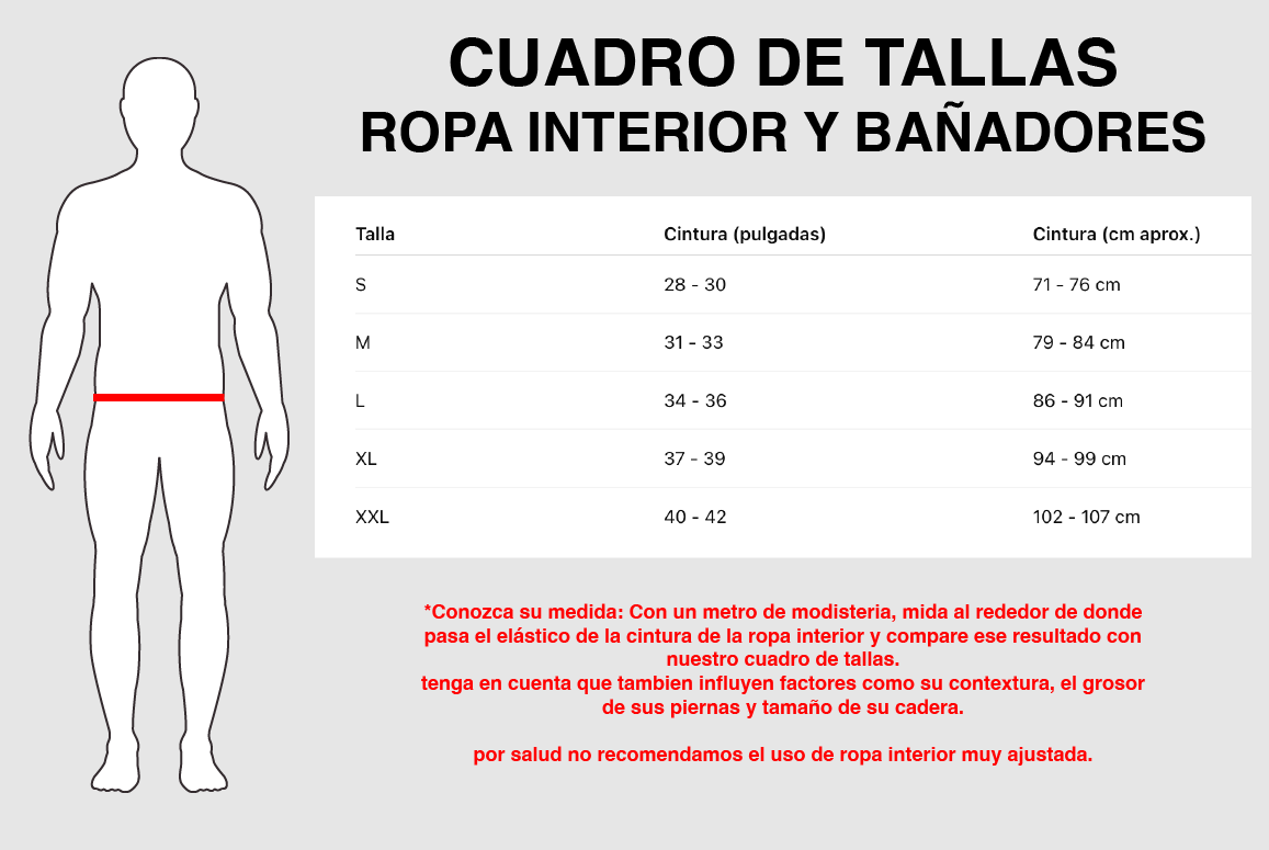 - Tome sus medidas antes de realizar su pedido con una cinta métrica y compárela con el cuadro de medidas, no se confíe de las medidas de otras marcas, ya que cada empresa maneja diferentes medidas.
